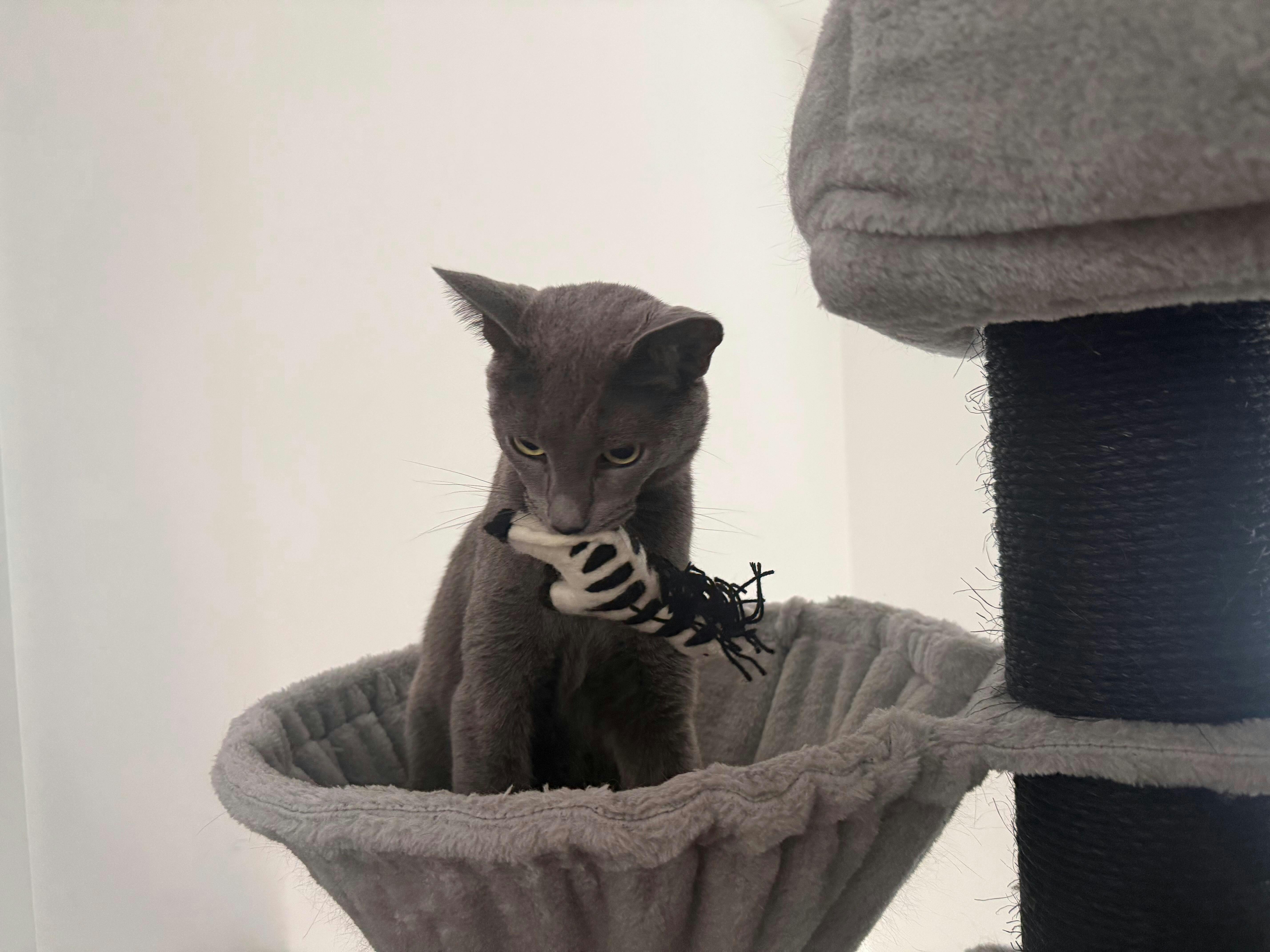 Bitte lass deine Katze nicht unbeaufsichtigt mit dem Spielzeug – beim Spielen können sich Fäden lösen, die eventuell verschluckt werden.